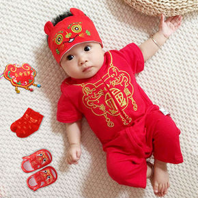 婴儿满月衣服夏季男女宝宝一周岁抓周礼服秋冬百天红色...