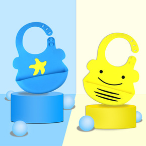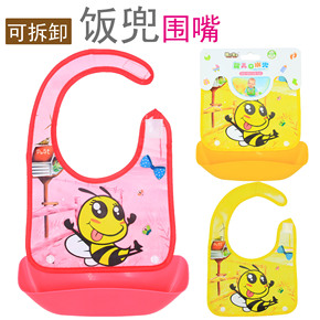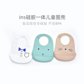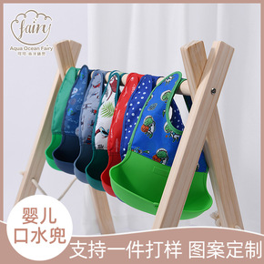婴儿立体防水围兜宝宝卡通围嘴仿硅胶围嘴可拆卸吃饭围...