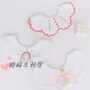 ins韩版新款围嘴婴儿防水棉质围兜卡通造型口水巾柔...
