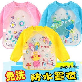 儿童罩衣宝宝卡通PEVA长袖防水反穿衣围裙吃饭围兜...