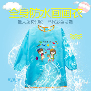 厂家直销印制LOGO宝宝画画衣服罩衣防水儿童中长款...