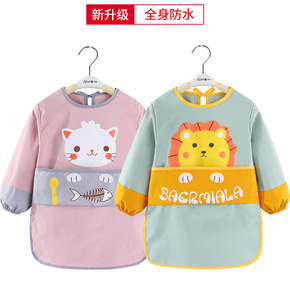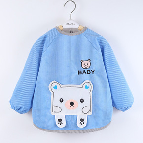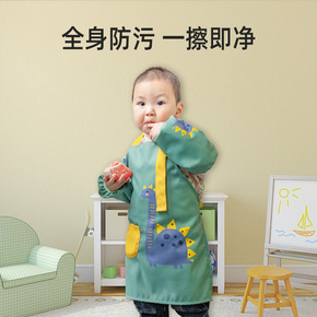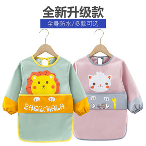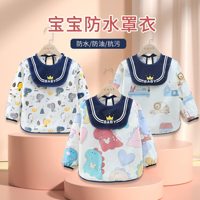 宝宝吃饭罩衣围兜防水防脏秋冬儿童长袖反穿衣围裙男女...