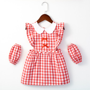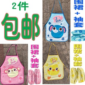 儿童带套袖围裙女宝宝防水防脏吃饭围兜女孩公主裙罩衣...