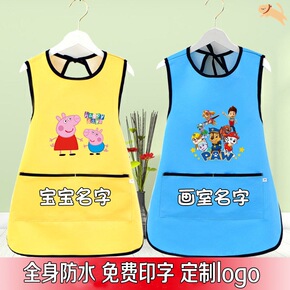 儿童围裙义乌卡通印花防水防油画画衣宝宝小孩罩衣ev...