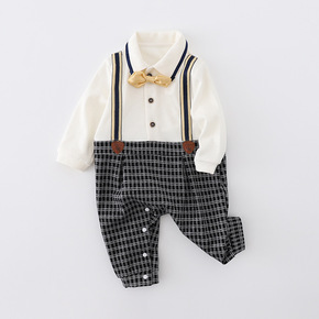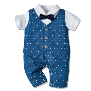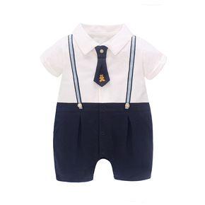 童装绅士领结宝宝爬服批发短袖开档新生儿哈衣婴儿外出...