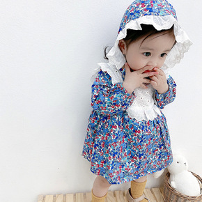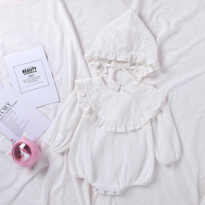 春秋季婴幼儿长袖连体哈衣女宝宝洋气绣花花边包屁衣儿...
