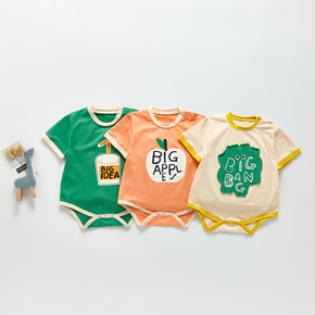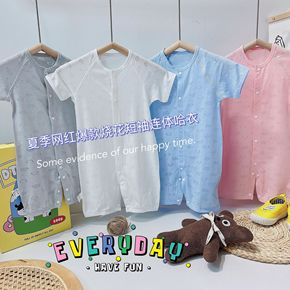 婴儿连体衣夏季新款儿童服装男宝宝纯色短袖哈衣外出欧...