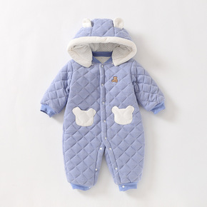 新款小熊熊可脱帽对开保暖连体衣男女宝宝长袖纯棉加厚...