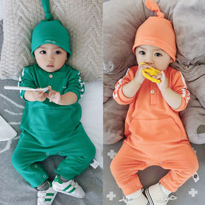 ins童装婴儿连体衣春秋韩版长袖宝宝哈衣送帽子男女...