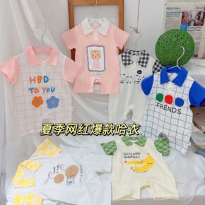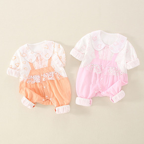 婴儿衣服夏装新款女宝宝韩版立体印花连体衣哈衣爬服外...