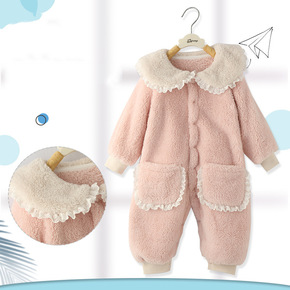 宝宝连体衣秋冬韩版羊羔毛小熊印花哈衣银狐绒男女宝宝...