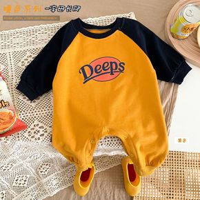 婴儿秋装连体衣外出爬服哈衣拼色2022洋气韩版可爱...