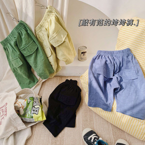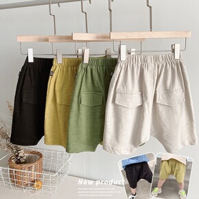 儿童夏季棉麻童裤 韩板男女童大PP跨裤 儿童糖果色...
