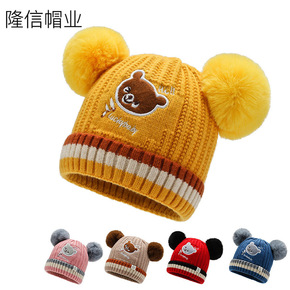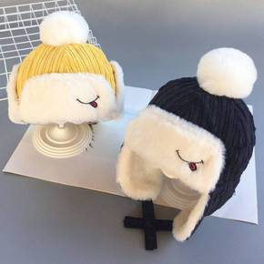 儿童毛线帽2022秋冬新款男女宝宝白色毛球护耳毛球...