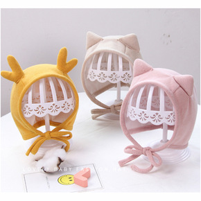 本惠小鹿婴儿套头帽新生儿帽秋冬新款帽子纯棉胎帽套头...