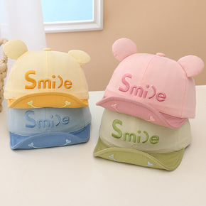 春夏季新款儿童翻边帽子棒球帽smile男女宝宝软沿...