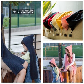 亲子秋冬保暖欢乐*儿童针织围脖围巾帽子一体秋冬宝宝...