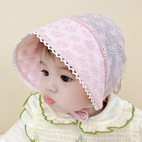 J134 提花宫廷帽 春季新款宝宝公主帽子 镂...