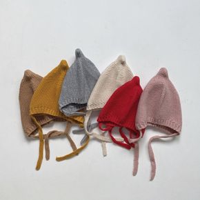 日韩男女宝宝毛线尖尖帽保暖针织亲子卷边帽来回针奶嘴...
