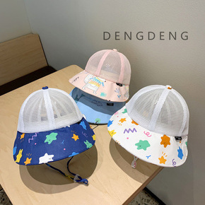 夏季宝宝网帽大帽檐防晒帽儿童薄款渔夫帽遮阳帽男女童...