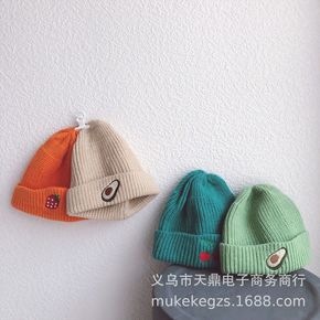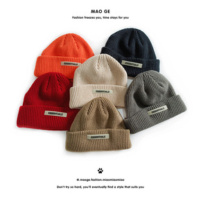 日系原宿风风儿童拼色针织帽子秋冬简约潮男女童圆顶毛...