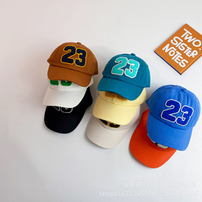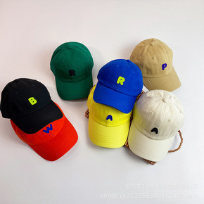 韩风儿童鸭舌帽子简约字母刺绣糖果色男女宝宝嘻哈出游...