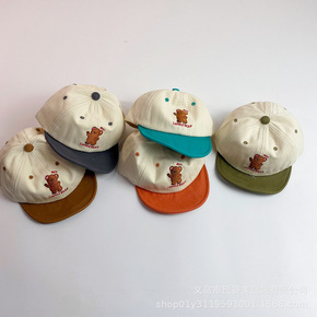 韩范儿童棒球帽子小熊刺绣可爱拼接软檐超萌男女宝宝百...