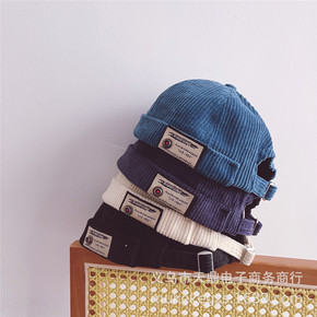 日系个性儿童灯芯绒瓜皮帽子 潮男女童街拍小布标纯色...