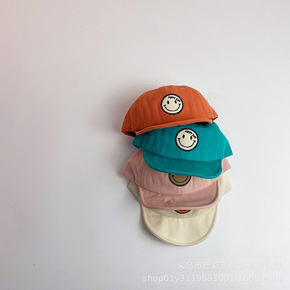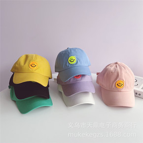 韩范儿童棒球帽子日系刺绣笑脸可爱软檐超萌男女宝宝超...