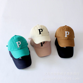 chic风儿童个性字母P鸭舌帽男女童时尚街拍造型帽...