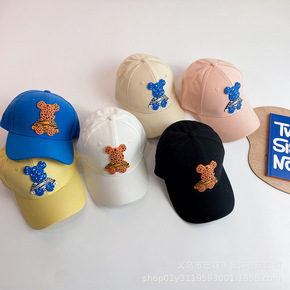 韩范儿童棒球帽子豹纹小熊贴标纯色街拍凹造型个性男女...