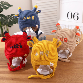 N49儿童新款潮流翻边字母尖尖毛线帽奶嘴帽可爱休闲...