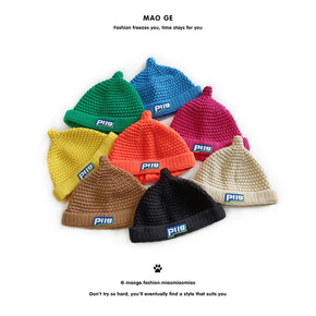 猫哥儿童韩版时尚针织帽套头字母标细针圆顶休闲简约单...