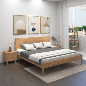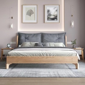 全实木现代简约北欧主卧软靠包卧室家具实木床家装建材...