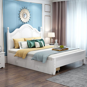 风格:北欧风 颜色:胡桃色床无抽屉,送床垫、胡桃色床无抽屉+床头柜*2,送床垫、白色床双抽屉...