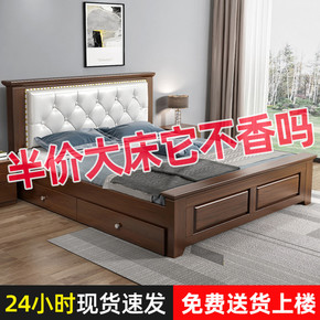 实木床主卧双人.米床架.米橡木大婚床工厂中式床经济...