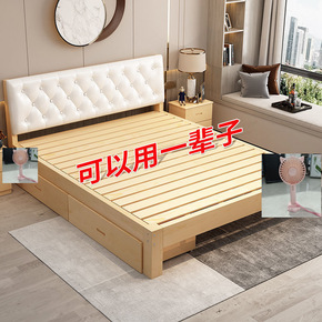 床.米家用主卧大床北欧实木.双人床米出租屋单人床...