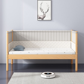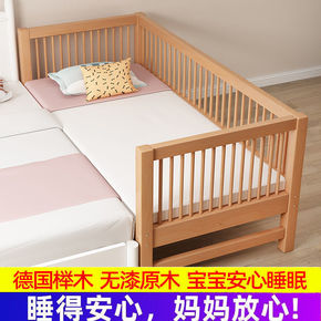 榉木儿童床带护栏小床婴儿男孩女孩床单人床床边加宽拼...