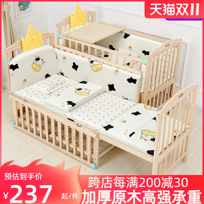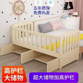 定儿实制儿童床拼宽大床带护栏单人男孩加接婴木宝宝床...