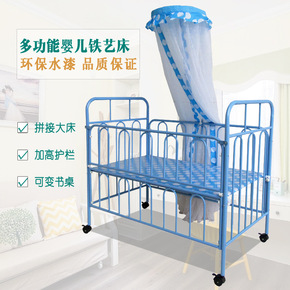 婴儿床铁艺床宝宝新生儿床环保多功能带蚊帐可拼接大床...