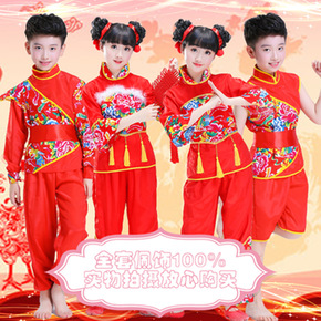 儿童打鼓服中国民族风元旦喜庆演出服腰鼓舞开门红小学...