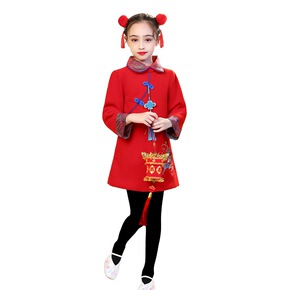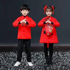 元旦过年喜庆汉服男女儿童演出服舞蹈表演服唐装加绒加...