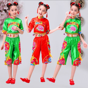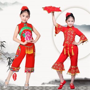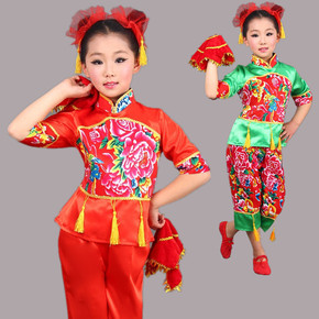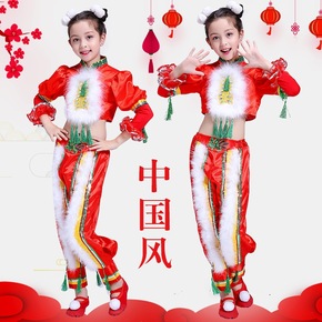 新款儿童秧歌服中国风喜庆开门红舞蹈服女元旦中国结腰...