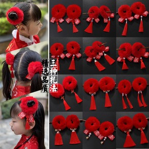 批发中国风儿童发圈流苏发饰古风汉服皮筋宝宝新年头饰...