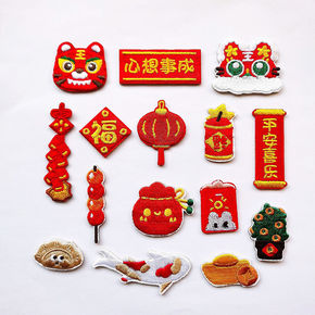 年味风装饰贴虎年好彩头刺绣布贴自粘贴卡通中式儿童补...