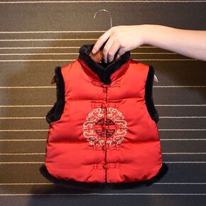新品秋冬款儿童唐装背心周岁喜庆唐装过年唐装表演服舞...