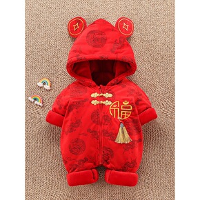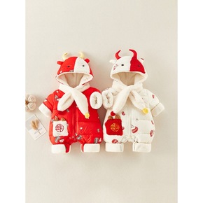 婴儿新年连体衣可爱宝宝加厚儿冬套装冬款可爱卡通满月...