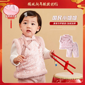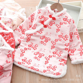 女童唐装套装冬装女宝宝百天周岁庆生服儿童过年喜庆拜...