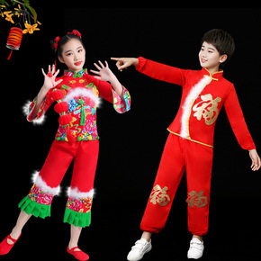 儿童男女喜庆中国结红秧歌演出服装少儿元旦舞蹈服饰开...