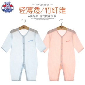 婴儿衣服竹纤维长袖夏季薄款哈衣0-3个月女宝宝新生...
